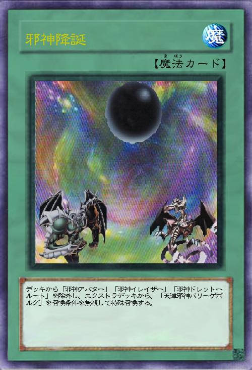 | デッキから「邪神アバター」「邪神イレイザー」「邪神ドレットールート」を除外し、エクストラデッキから、「天津邪神バリーゲボルグ」を召喚条件を無視して特殊召喚する。 | |||