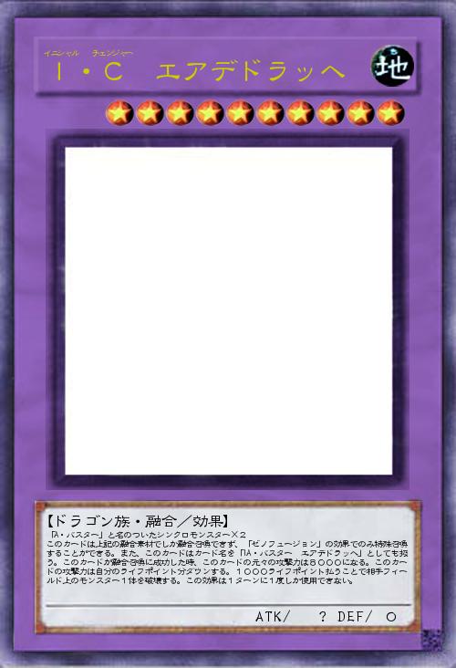 「A・バスター」と名のついたシンクロモンスター×2 このカードは上記の融合素材でしか融合召喚できず、「ゼノフュージョン」の効果でのみ特殊召喚することができる。また、このカードはカード名を「IA・バスター エアデドラッへ」としても扱う。このカードが融合召喚に成功した時、このカードの元々の攻撃力は8000になる。このカードの攻撃力は自分のライフポイント分ダウンする。1000ライフポイント払うことで相手フィールド上のモンスター1体を破壊する。この効果は1ターンに1度しか使用できない。 |