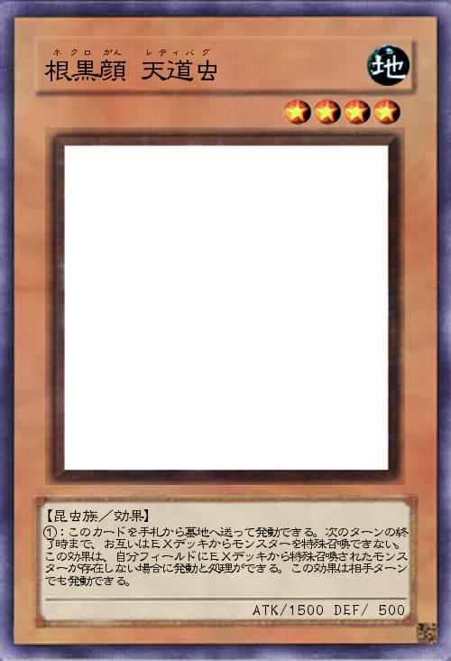 黒いには元々、不正や犯罪の疑いが強いという意味もあり、原作・アニメで何かと相手を妨害する不正をしてくる羽蛾なので、そんな彼のイメージに合わせて名前を「根黒」にし、同じく相手を妨害する効果を持つこのカードを作ってみました。