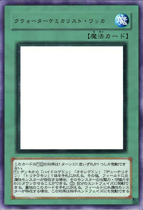 | このカードの①②の効果は1ターンに1度いずれか1つしか発動できない。 ①:デッキから「ハイドロゲドン」「オキシゲドン」「デューテリオン」「トリチウモン」1体を手札に加える。その後、フィールドに炎属性モンスターが存在する場合、そのモンスターの攻撃力・守備力を800ダウンさせることができる。②:自分のエンドフェイズに発動できる。墓地のこのカードを手札に加える。フィールドに水属性モンスターが存在する場合、この効果は相手エンドフェイズにも発動できる。 | |||