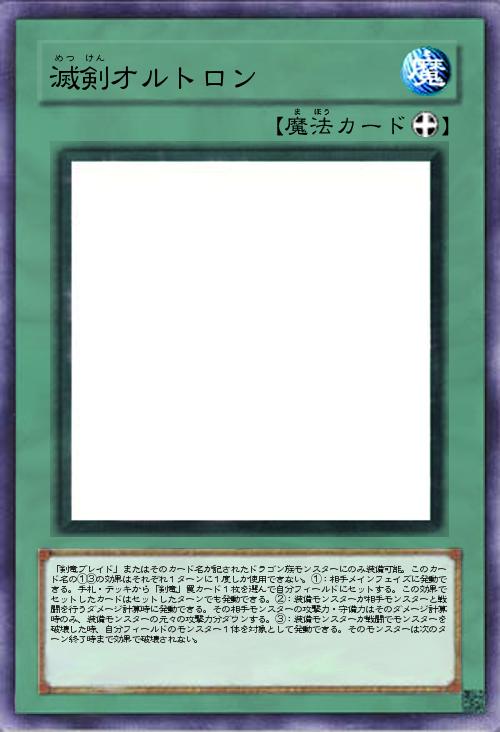 | 「剣竜ブレイド」またはそのカード名が記されたドラゴン族モンスターにのみ装備可能。このカード名の①③の効果はそれぞれ1ターンに1度しか使用できない。①:相手メインフェイズに発動できる。手札・デッキから「剣竜」罠カード1枚を選んで自分フィールドにセットする。この効果でセットしたカードはセットしたターンでも発動できる。②:装備モンスターが相手モンスターと戦闘を行うダメージ計算時に発動できる。その相手モンスターの攻撃力・守備力はそのダメージ計算時のみ、装備モンスターの元々の攻撃力分ダウンする。③:装備モンスターが戦闘でモンスターを破壊した時、自分フィールドのモンスター1体を対象として発動できる。そのモンスターは次のターン終了時まで効果で破壊されない。 | |||
