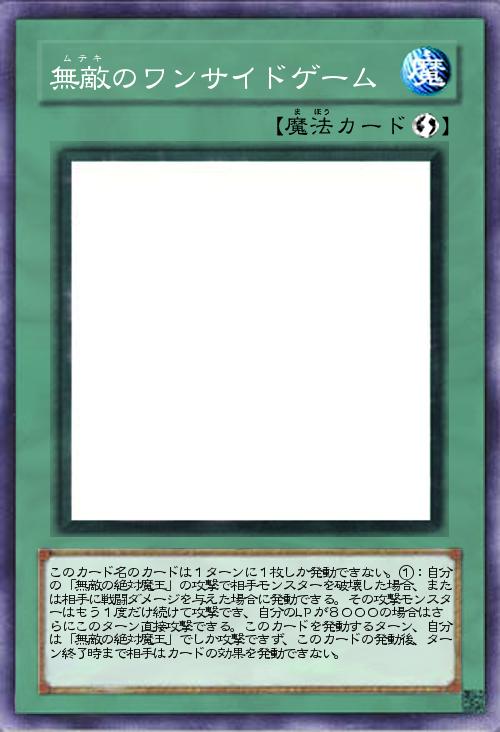 | このカード名のカードは1ターンに1枚しか発動できない。①:自分の「無敵の絶対魔王」の攻撃で相手モンスターを破壊した場合、または相手に戦闘ダメージを与えた場合に発動できる。その攻撃モンスターはもう1度だけ続けて攻撃でき、自分のLPが8000の場合はさらにこのターン直接攻撃できる。このカードを発動するターン、自分は「無敵の絶対魔王」でしか攻撃できず、このカードの発動後、ターン終了時まで相手はカードの効果を発動できない。 | |||
