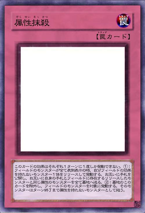 「リリースしたモンスターと同じ属性のモンスターを墓地へ送らせるというシンプルな効果の罠カード。このカードの発動以前に「属性抹殺」が墓地にあるならこのカードの②の効果で墓地を送りたくないリリースするモンスターと同じ属性のモンスターの属性をなしにしておいて、そのあとモンスターをリリースして①の効果を発動するという手もある。」(2022-01-20 06:13)