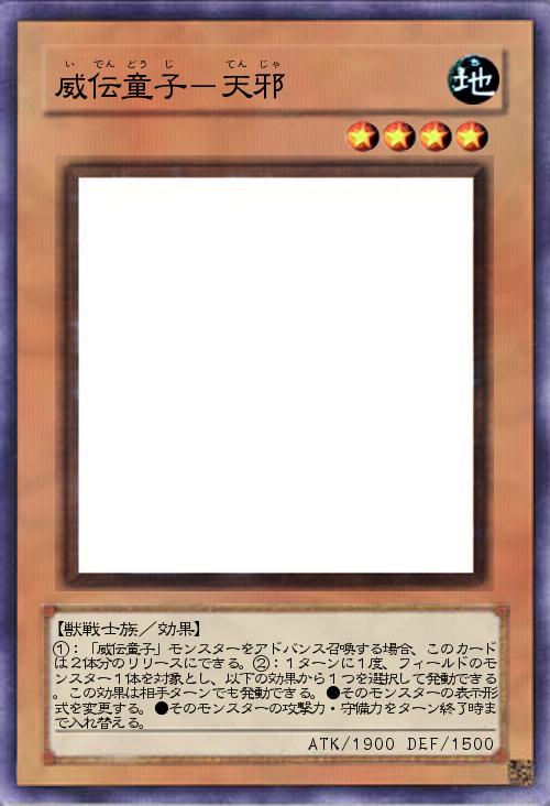 | ①:「威伝童子」モンスターをアドバンス召喚する場合、このカードは2体分のリリースにできる。②:1ターンに1度、フィールドのモンスター1体を対象とし、以下の効果から1つを選択して発動できる。この効果は相手ターンでも発動できる。●そのモンスターの表示形式を変更する。●そのモンスターの攻撃力・守備力をターン終了時まで入れ替える。 | |||