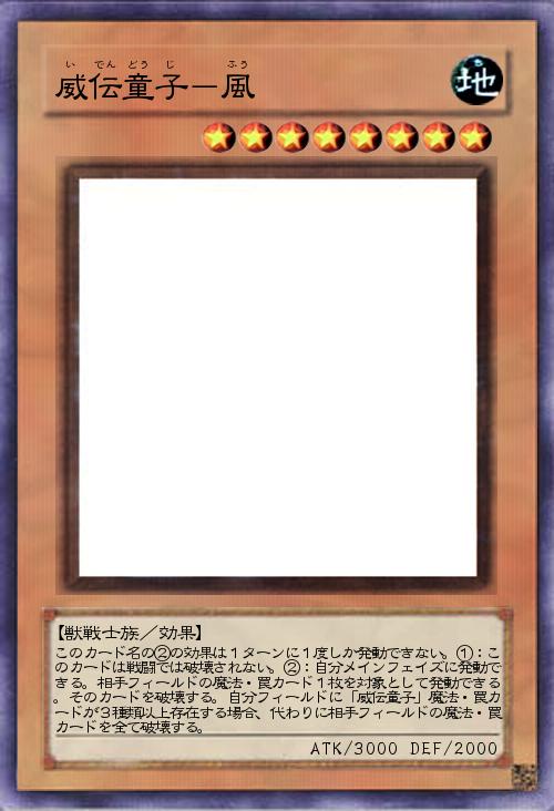 | このカード名の②の効果は1ターンに1度しか発動できない。①:このカードは戦闘では破壊されない。②:自分メインフェイズに発動できる。相手フィールドの魔法・罠カード1枚を対象として発動できる。そのカードを破壊する。自分フィールドに「威伝童子」魔法・罠カードが3種類以上存在する場合、代わりに相手フィールドの魔法・罠カードを全て破壊する。 | |||