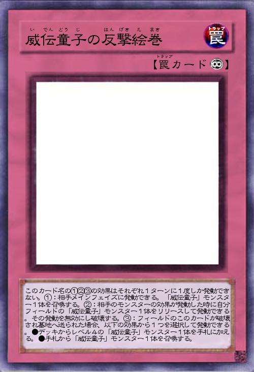 「相手ターンに「威伝童子」を召喚できる 「威伝童子」をリリースして相手のモンスター効果無効 墓地に送られた場合にレベル4の「威伝童子」サーチか威伝童子ならなんでも召喚」(2022-01-24 19:21)