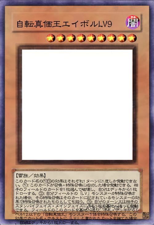 | このカード名の①③の効果はそれぞれ1ターンに1度しか発動できない。①:このカードが召喚・特殊召喚に成功した場合発動できる。相手のフィールドのカードを1枚選んで破壊し、自分はデッキから1枚ドローする。②:自分フィールドの「LV」モンスターが特殊召喚された場合、その特殊召喚はそのカードに記されているモンスターの効果で特殊召喚されたものとしても扱う。③:自分のターン又は相手のスタンバイフェイズ・メインフェイズに手札1枚を墓地へ送って発動できる。フィールドのこのカードを墓地へ送り、手札・デッキからレベル12以下の「自転真価王」モンスター1体を特殊召喚する。この効果でカード名・テキストに「LV」と書かれたカードを捨てた場合、自分はデッキから1枚ドローする。 | |||