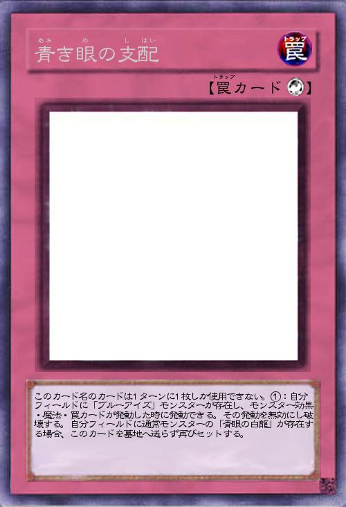 | このカード名のカードは1ターンに1枚しか使用できない。①:自分フィールドに「ブルーアイズ」モンスターが存在し、モンスター効果・魔法・罠カードが発動した時に発動できる。その発動を無効にし破壊する。自分フィールドに通常モンスターの「青眼の白龍」が存在する場合、このカードを墓地へ送らず再びセットする。 | |||