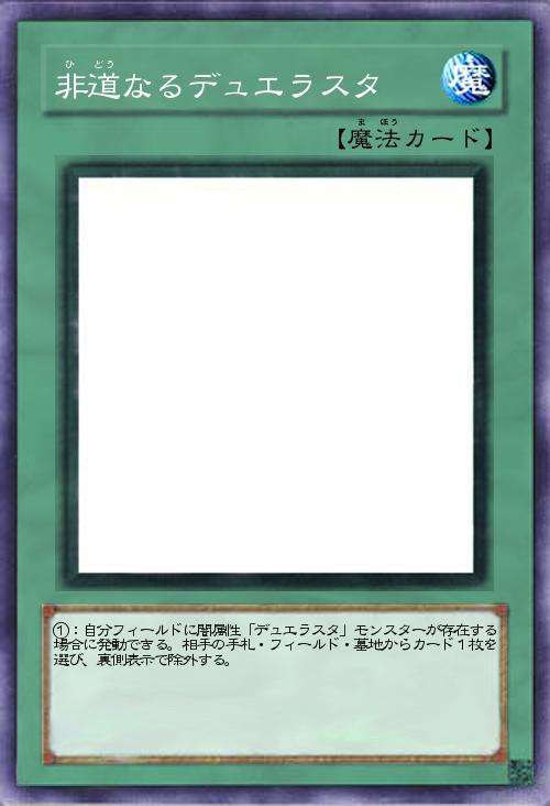 | ①:自分フィールドに闇属性「デュエラスタ」モンスターが存在する場合に発動できる。相手の手札・フィールド・墓地からカード1枚を選び、裏側表示で除外する。 | |||