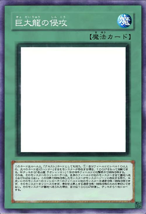 | このカードはルール上、「クエスト」カードとしても扱う。①:自分フィールドにレベル10以上の、元々のカード名に「ハンター」を含むモンスターが存在する場合、100LPを払って発動できる。EXデッキから「老山龍 ラオシャンロン」1体を相手フィールドに攻撃表示で特殊召喚する。その後、そのモンスターのコントローラーは、自身のフィールドの他のモンスターを全て墓地へ送らなければならない。この効果で特殊召喚したモンスターがモンスターゾーンに存在する限り、お互いにそのモンスターのコントローラーのフィールドに他のモンスターを通常召喚・特殊召喚できず、そのモンスターをリリースできず、素材を必要とする通常召喚・特殊召喚のための素材にできない。そのモンスターが墓地へ送られた場合、自分は1000LP回復し、デッキから1枚ドローする。 | |||