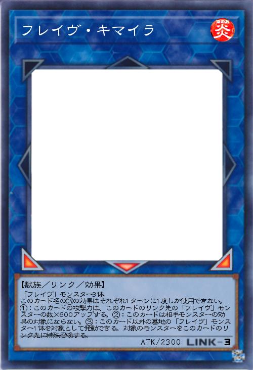 | 「フレイヴ」モンスター3体 このカード名の③の効果はそれぞれ1ターンに1度しか使用できない。 ①:このカードの攻撃力は、このカードのリンク先の「フレイヴ」モンスターの数×600アップする。②:このカードは相手モンスターの効果の対象にならない。③:このカード以外の墓地の「フレイヴ」モンスター1体を対象として発動できる。対象のモンスターをこのカードのリンク先に特殊召喚する。 | |||
