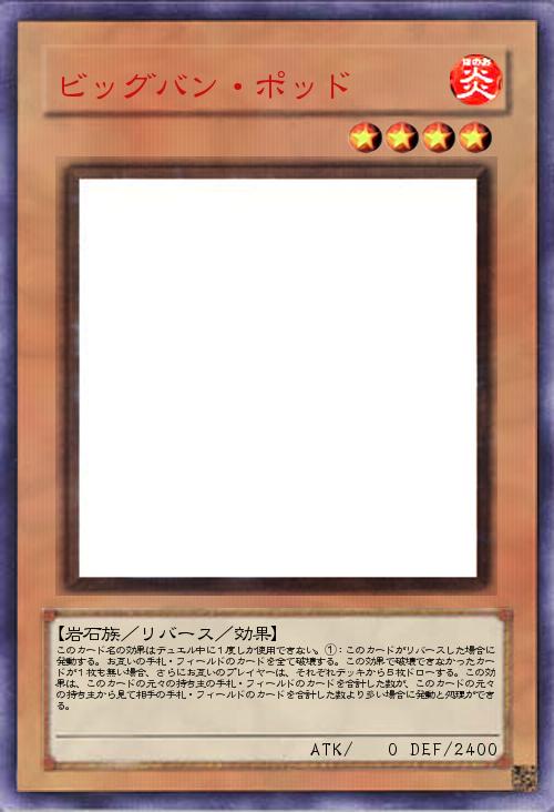 お互いの手札・フィールドのカードを全て破壊し、破壊できなかったカードが1枚も無い場合、さらにお互いに5枚ドローする効果は、ビッグバンの大爆発から全てが始まるというイメージで作りました。