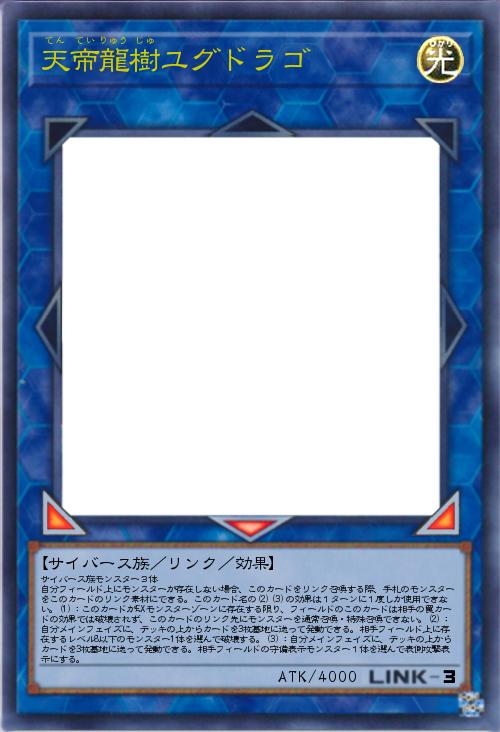 | サイバース族モンスター3体 自分フィールド上にモンスターが存在しない場合、このカードをリンク召喚する際、手札のモンスターをこのカードのリンク素材にできる。このカード名の(2)(3)の効果は1ターンに1度しか使用できない。(1):このカードがEXモンスターゾーンに存在する限り、フィールドのこのカードは相手の罠カードの効果では破壊されず、このカードのリンク先にモンスターを通常召喚・特殊召喚できない。(2):自分メインフェイズに、デッキの上からカードを3枚墓地に送って発動できる。相手フィールド上に存在するレベル8以下のモンスター1体を選んで破壊する。(3):自分メインフェイズに、デッキの上からカードを3枚墓地に送って発動できる。相手フィールドの守備表示モンスター1体を選んで表側攻撃表示にする。 | |||