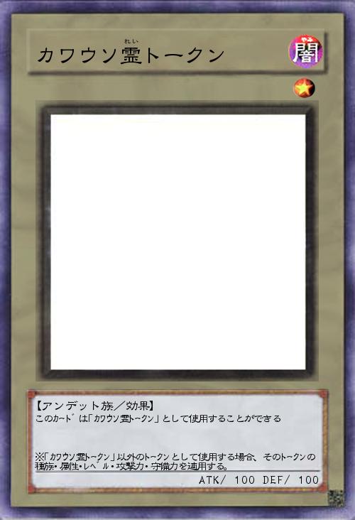 | このカードは「カワウソ霊トークン」として使用することができる ※「カワウソ霊トークン」以外のトークンとして使用する場合、そのトークンの種族・属性・レベル・攻撃力・守備力を適用する。 | |||