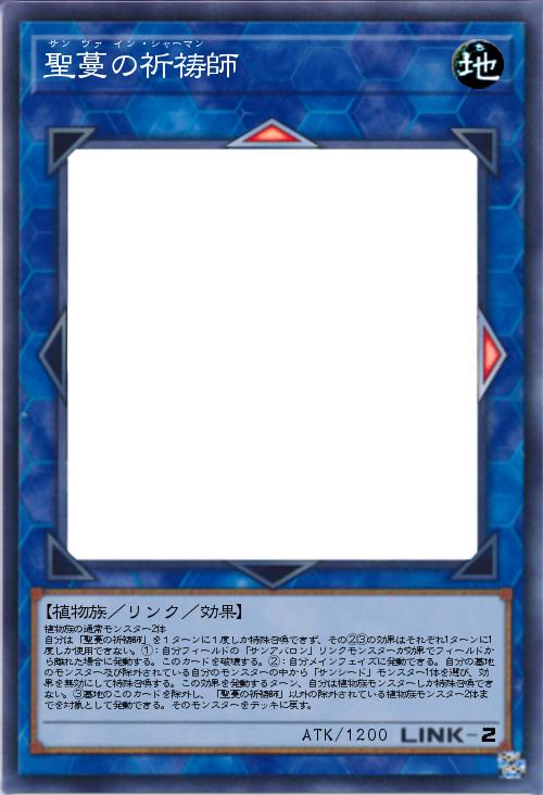| 植物族の通常モンスター2体 自分は「聖蔓の祈祷師」を1ターンに1度しか特殊召喚できず、その②③の効果はそれぞれ1ターンに1度しか使用できない。①:自分フィールドの「サンアバロン」リンクモンスターが効果でフィールドから離れた場合に発動する。このカードを破壊する。②:自分メインフェイズに発動できる。自分の墓地のモンスター及び除外されている自分のモンスターの中から「サンシード」モンスター1体を選び、効果を無効にして特殊召喚する。この効果を発動するターン、自分は植物族モンスターしか特殊召喚できない。③墓地のこのカードを除外し、「聖蔓の祈祷師」以外の除外されている植物族モンスター2体までを対象として発動できる。そのモンスターをデッキに戻す。 | |||