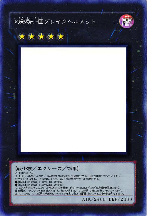 | レベル5モンスター×2 (1):1ターンに1度、このカードのX素材1つ取り除いて発動できる。自分の除外されているカードを全てデッキに戻し、その数によって、以下の効果の中から1つ適用する。 ●3枚以上:自分はデッキから1枚ドローする。 ●5枚以上:自分はデッキから2枚ドローする。 (2):X召喚されたこのカードが破壊された場合、デッキから同じレベルの「幻影騎士団」モンスター2体を選び、そのモンスターを自分フィールドに特殊召喚する。この効果で特殊召喚したモンスターのレベルは1つ下がる。この効果の発動後、ターン終了時まで自分は闇属性モンスターしか特殊召喚できない。 | |||