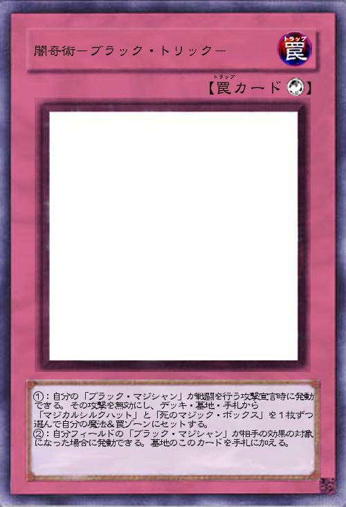 | ①:自分の「ブラック・マジシャン」が戦闘を行う攻撃宣言時に発動できる。その攻撃を無効にし、デッキ・墓地・手札から 「マジカルシルクハット」と「死のマジック・ボックス」を1枚ずつ選んで自分の魔法&罠ゾーンにセットする。 ②:自分フィールドの「ブラック・マジシャン」が相手の効果の対象になった場合に発動できる。墓地のこのカードを手札に加える。 | |||