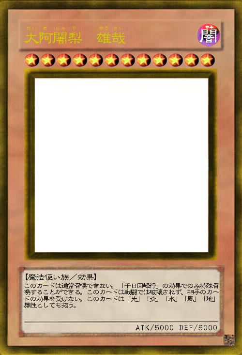 | このカードは通常召喚できない。「千日回峰行」の効果でのみ特殊召喚することができる。このカードは戦闘では破壊されず、相手のカードの効果を受けない。このカードは「光」「炎」「水」「風」「地」属性としても扱う。 | |||
