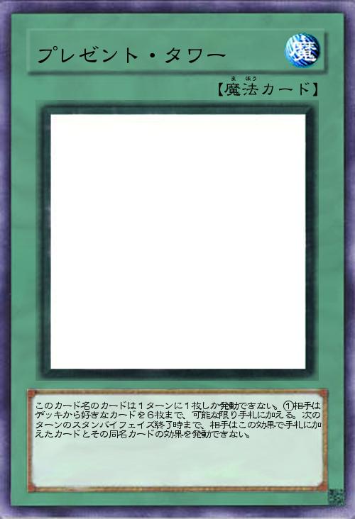 | このカード名のカードは1ターンに1枚しか発動できない。①相手はデッキから好きなカードを6枚まで、可能な限り手札に加える。次のターンのスタンバイフェイズ終了時まで、相手はこの効果で手札に加えたカードとその同名カードの効果を発動できない。 | |||