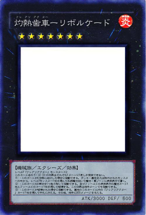 | レベル7「フレアリアクター」モンスター×2 このカード名の(1)(2)(3)の効果はそれぞれ1ターンに1度しか使用できない。 (1):このカードがX召喚に成功した場合に発動できる。デッキ・墓地または除外されたモンスターの中から、レベル7モンスター1体を選んで永続魔法扱いで魔法・罠ゾーンに表側表示で置く。 (2):このカードのX素材を1つ取り除いて発動できる。自分フィールドの表側表示の魔法カード1枚とフィールドのカード1枚を選んで破壊する。この効果は相手ターンでも発動できる。 (3):このカードが破壊された場合に発動できる。墓地のこのカード以外の「フレアリアクター」カード1枚を選んで手札に加える。その後、相手に500ダメージを与える。 | |||