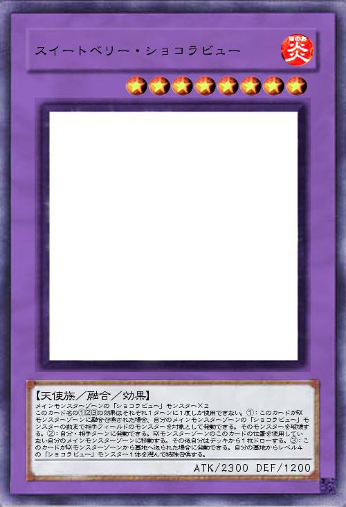 | メインモンスターゾーンの「ショコラビュー」モンスター×2 このカード名の①②③の効果はそれぞれ1ターンに1度しか使用できない。①:このカードがEXモンスターゾーンに融合召喚された場合、自分のメインモンスターゾーンの「ショコラビュー」モンスターの数まで相手フィールドのモンスターを対象として発動できる。そのモンスターを破壊する。②:自分・相手ターンに発動できる。EXモンスターゾーンのこのカードの位置を使用していない自分のメインモンスターゾーンに移動する。その後自分はデッキから1枚ドローする。③:このカードがEXモンスターゾーンから墓地へ送られた場合に発動できる。自分の墓地からレベル4の「ショコラビュー」モンスター1体を選んで特殊召喚する。 | |||