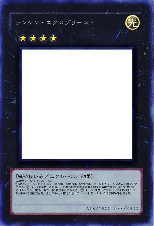 | 光属性レベル4モンスター×2 ①自分フィールドのモンスターは召喚・反転召喚・特殊召喚・セットしたターンに表示形式を変更できる。②1ターンに1度、このカードの表示形式が変更された場合に発動できる。自分の墓地から「テンシン」魔法・罠カード1枚を手札に加える。③1ターンに1度、このカードのX素材を1つ取り除いて発動できる。自分の手札・墓地から「テンシン」モンスター1体を特殊召喚できる。 | |||