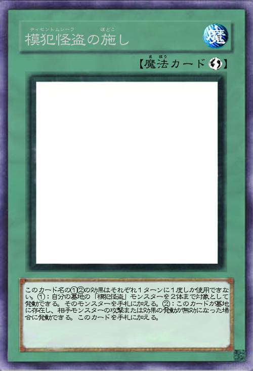 「オリジナルテーマ「模犯怪盗」の魔法カードです。カード名の「模犯怪盗」のルビは「ディセントムシーフ」です。」(2022-03-17 22:21)
