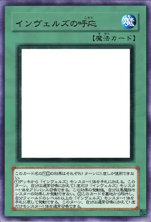 | このカード名の①②の効果はそれぞれ1ターンに1度しか使用できない。 ①デッキから「インヴェルズ」モンスター1体を手札に加える。このターン、自分は通常召喚に加えて1度だけ「インヴェルズ」モンスター1体をアドバンス召喚できる。この効果の発動後、自分は悪魔族モンスターの効果しか発動できない。②このカードを墓地から除外し、自分フィールドのレベル5以上の「インヴェルズ」モンスター1体を手札に戻して発動できる。このターン、自分は通常召喚に加えて1度だけモンスター1体を通常召喚できる。 | |||