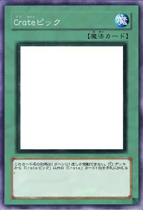 | このカード名の効果は1ターンに1度しか発動できない。①:デッキから「Crateピック」以外の「Crate」カード1枚を手札に加える。 | |||