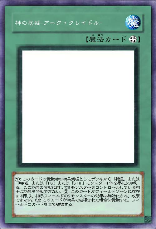 | ①:このカードの発動時の効果処理としてデッキから「機皇」または「時械」または「TG」または「Sin」モンスター1体を手札に加える。この効果の発動に対してSモンスターをコントロールしている相手は効果を発動できない。②:このカードがフィールドゾーンに存在する限り、相手フィールドのSモンスターの効果は無効化され、攻撃できない。③:このカードが効果で破壊された場合に発動する。フィールドのカードを全て破壊する。 | |||