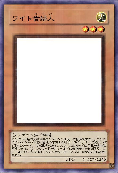 「ワイトの貴婦人。手札をコストにして特殊召喚でき、レベル3以下のアンデット族に効果破壊耐性を付与するものにしてあります。」(2022-03-26 18:14)