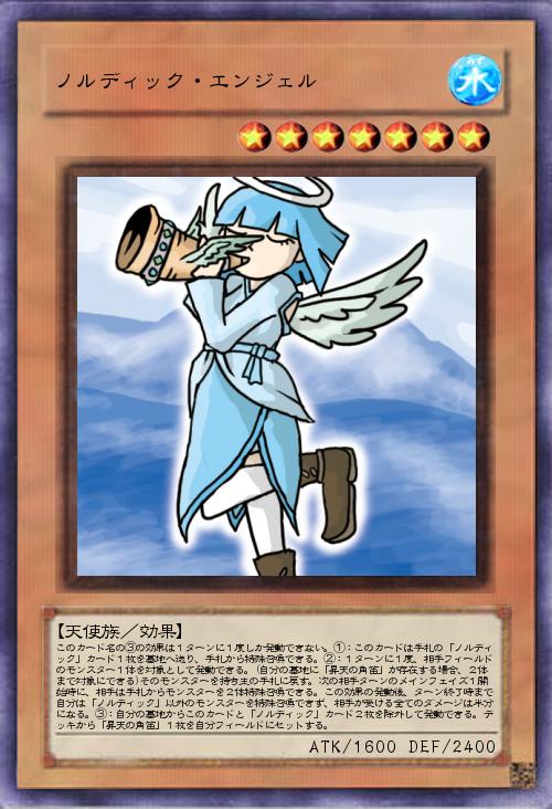 「ノルディックの切り札的な立ち位置のカードです。このカードは天使なので角笛サポートというより、昇天の角笛のみのサポートです。効果が独特で、他に上手い事②のテキストを思いつかなかったのですが、やりたい動きとしては、「相手のモンスターをバウンスし、次のターンに相手は手札からモンスターを特殊召喚する権利を与えられる為、そこに角笛を当てて実質的な除去とする」という感じです。無論、EXデッキから特殊召喚されたモンスターなら普通の除去と変わりません。墓地に昇天の角笛があるなら、さらにもう1枚バウンスできます。