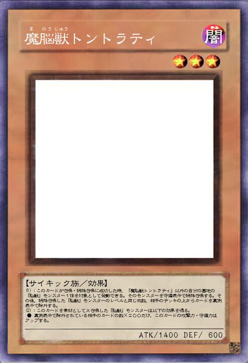 | (1):このカードが召喚・特殊召喚に成功した時、「魔脳獣トントラティ」以外の自分の墓地の「脳獣」モンスター1体を対象として発動できる。そのモンスターを守備表示で特殊召喚する。その後、特殊召喚した「脳獣」モンスターのレベルと同じ枚数、相手のデッキの上からカードを裏側表示で除外する。 (2):このカードを素材としてX召喚した「脳獣」モンスターは以下の効果を得る。 ● 裏側表示で除外されている相手のカードの数×200だけ、このカードの攻撃力・守備力はアップする。 | |||
