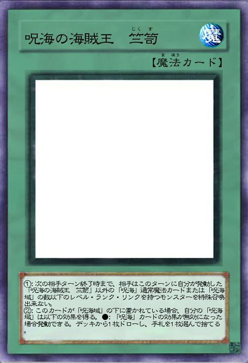 | ①:次の相手ターン終了時まで、相手はこのターンに自分が発動した「呪海の海賊王 竺笥」以外の「呪海」通常魔法カードまたは「呪海域」の数以下のレベル・ランク・リンクを持つモンスターを特殊召喚出来ない。 ②:このカードが「呪海域」の下に置かれている場合、自分の「呪海域」は以下の効果を得る。●:「呪海」カードの効果が無効になった場合発動できる。デッキから1枚ドローし、手札を1枚選んで捨てる。 | |||