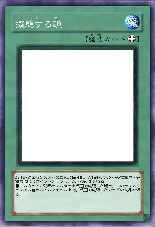 | 戦士族通常モンスターにのみ装備可能。装備モンスターの攻撃力・守備力は500ポイントアップし、以下の効果を得る。 ●このカードが効果モンスターを戦闘で破壊した場合、このモンスターは次の自分バトルフェイズまで、戦闘で破壊したカードの効果を得る。 | |||