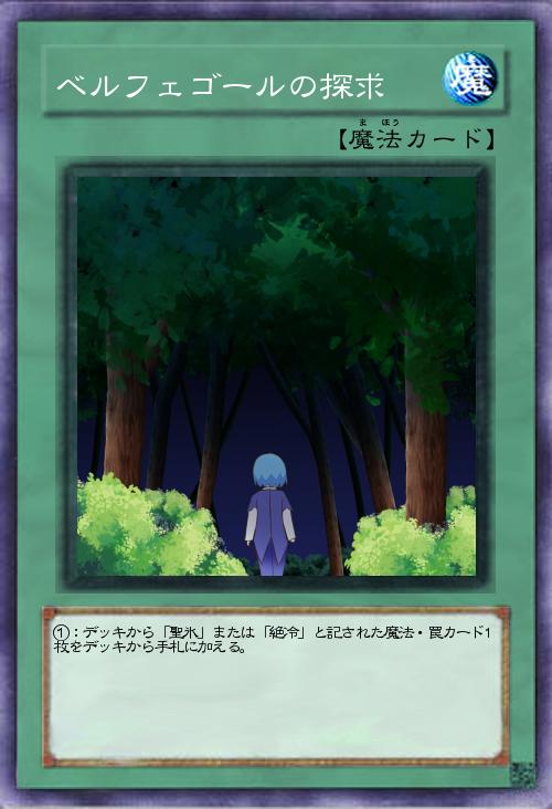 効果の内容は以前投稿した「未鎌カイツール」をサーチできるようなデザインにしました。「未鎌カイツール」にはベルフェゴールの魂が宿っているためそれに合わせたネーミングにしました。また、ベルフェゴールの探求とは不可能な計画をほのめかす皮肉な言葉とのことなのでこのようなデザインになっています。
