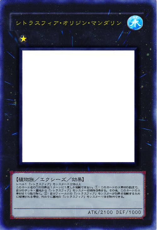 | レベル1「シトラスフィア」モンスター×2体以上 このカード名の①の効果は1ターンに1度しか発動できない。①:このカードのX素材の数まで、自分のデッキ・墓地から「シトラスフィア」モンスターを特殊召喚する。その後、このカードのX素材を1つ取り除く。②:自分フィールドの「シトラスフィア」モンスターが効果を発動するために破壊される場合、代わりに墓地の「シトラスフィア」モンスター1体を除外できる。 | |||