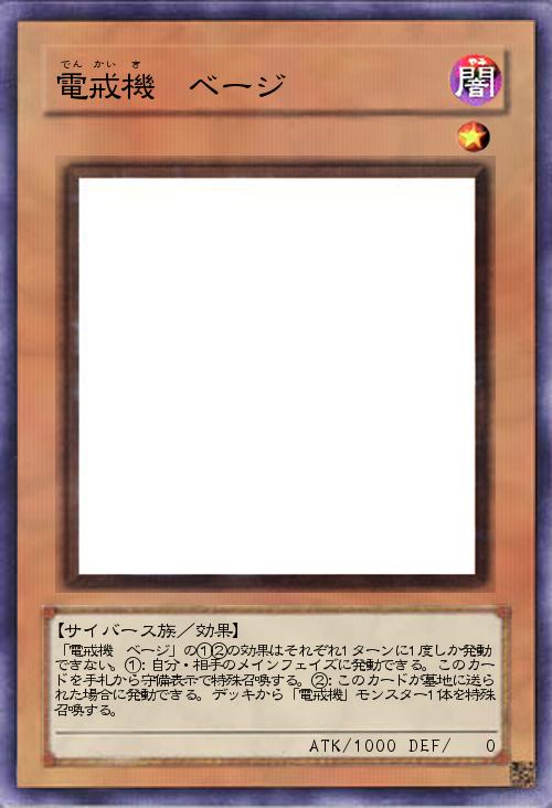 | 「電戒機 ベージ」の①②の効果はそれぞれ1ターンに1度しか発動できない。①:自分・相手のメインフェイズに発動できる。このカードを手札から守備表示で特殊召喚する。②:このカードが墓地に送られた場合に発動できる。デッキから「電戒機」モンスター1体を特殊召喚する。 | |||