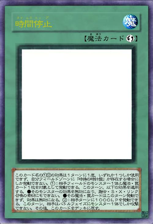 | このカード名の①②の効果は1ターンに1度、いずれか1つしか使用できず、自分フィールドゾーンに「時操の時計盤」が存在する場合にしか発動できない。①:相手フィールドのモンスター1体と魔法・罠カード1枚を対象として発動できる。このターン、以下の効果を適用する。●そのモンスターの効果を無効になり、融合・S・X・リンク召喚の素材にもできない。●その魔法・罠カードはこのターン発動できず、効果は無効になる。②:相手ターンに1000LPを発動できる。このターン、相手はバトルフェイズにモンスター1体でしか攻撃できない。その後、このカードをデッキに戻す。 | |||
