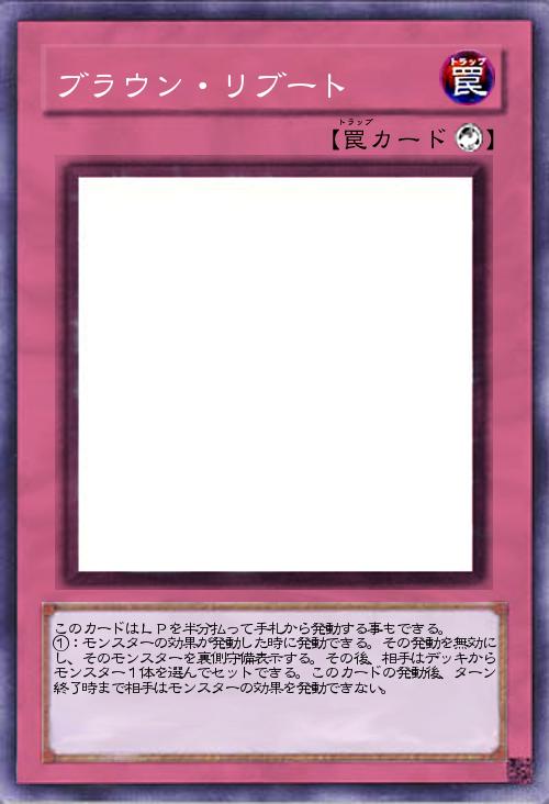 | このカードはLPを半分払って手札から発動する事もできる。 ①:モンスターの効果が発動した時に発動できる。その発動を無効にし、そのモンスターを裏側守備表示する。その後、相手はデッキからモンスター1体を選んでセットできる。このカードの発動後、ターン終了時まで相手はモンスターの効果を発動できない。 | |||