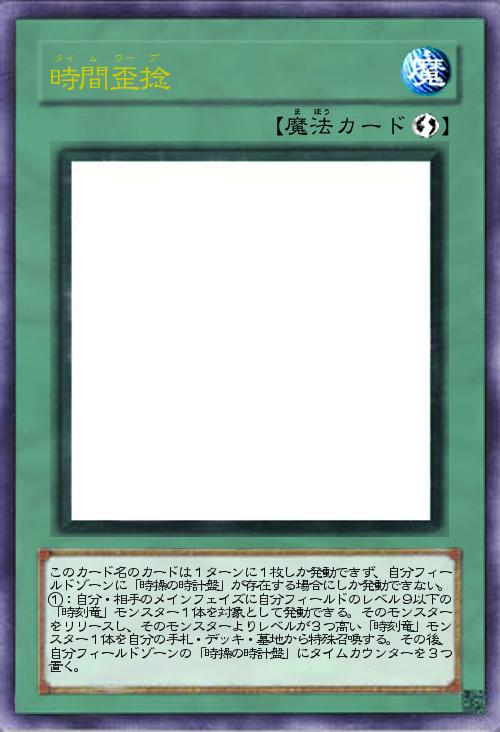 | このカード名のカードは1ターンに1枚しか発動できず、自分フィールドゾーンに「時操の時計盤」が存在する場合にしか発動できない。①:自分・相手のメインフェイズに自分フィールドのレベル9以下の「時刻竜」モンスター1体を対象として発動できる。そのモンスターをリリースし、そのモンスターよりレベルが3つ高い「時刻竜」モンスター1体を自分の手札・デッキ・墓地から特殊召喚する。その後、自分フィールドゾーンの「時操の時計盤」にタイムカウンターを3つ置く。 | |||