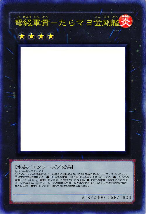 | レベル4モンスター×3 ①:このカードがX召喚に成功した場合に発動できる。そのX召喚の素材としたモンスターによって以下の効果を適用する。●「しゃりの軍貫」:自分はデッキから1枚ドローする。●「たらこの軍貫」:デッキから「軍貫」モンスター1体を手札に加える。●「マヨの軍貫」:相手に600ダメージを与える。②:フィールドに表側表示でカードが存在する限り、EXデッキから特殊召喚された自分の「軍貫」モンスターは相手の効果の対象にならない。 | |||