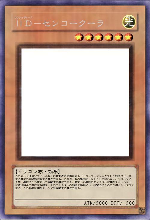 | このカードは自分フィールド上に表側表示で存在する「ⅠD-ファントムラウ」1体をリリース する事でのみ特殊召喚する事ができる。このカードの属性は「光」として扱わない。1ターンに 1度、属性を1つ宣言して発動する事ができる。宣言した属性のモンスターが相手フィールド上 に表側標示で存在する場合、そのモンスターの効果を無効にし、攻撃力を1000ポイントダウンする。この効果は相手ターンにも発動する事ができる。 | |||