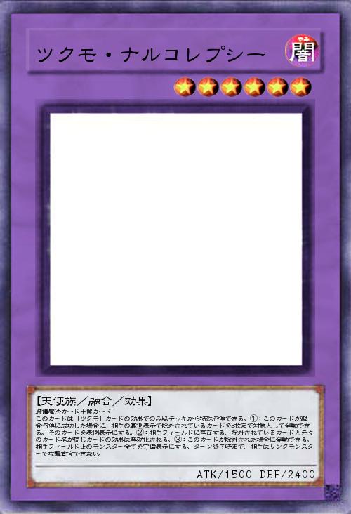 | 装備魔法カード+罠カード このカードは「ツクモ」カードの効果でのみEXデッキから特殊召喚できる。①:このカードが融合召喚に成功した場合に、相手の裏側表示で除外されているカードを3枚まで対象として発動できる。そのカードを表側表示にする。②:相手フィールドに存在する、除外されているカードと元々のカード名が同じカードの効果は無効化される。③:このカードが除外された場合に発動できる。相手フィールド上のモンスター全てを守備表示にする。ターン終了時まで、相手はリンクモンスターで攻撃宣言できない。 | |||