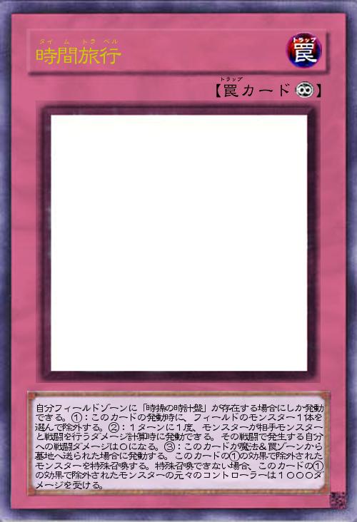 | 自分フィールドゾーンに「時操の時計盤」が存在する場合にしか発動できる。①:このカードの発動時に、フィールドのモンスター1体を選んで除外する。②:1ターンに1度、モンスターが相手モンスターと戦闘を行うダメージ計算時に発動できる。その戦闘で発生する自分への戦闘ダメージは0になる。③:このカードが魔法&罠ゾーンから墓地へ送られた場合に発動する。このカードの①の効果で除外されたモンスターを特殊召喚する。特殊召喚できない場合、このカードの①の効果で除外されたモンスターの元々のコントローラーは1000ダメージを受ける。 | |||
