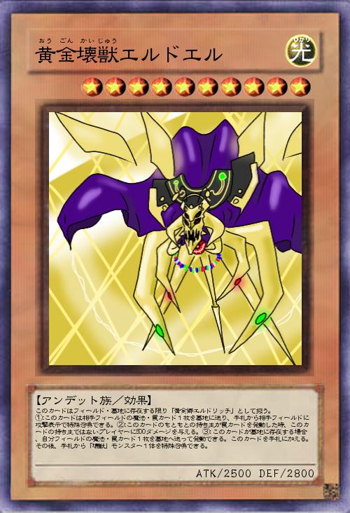 | このカードはフィールド・墓地に存在する限り「黄金郷エルドリッチ」として扱う。 ①:このカードは相手フィールドの魔法・罠カード1枚を墓地に送り、手札から相手フィールドに攻撃表示で特殊召喚できる。②:このカードのもともとの持ち主が罠カードを発動した時、このカードの持ち主ではないプレイヤーに500ダメージを与える。③:このカードが墓地に存在する場合、自分フィールドの魔法・罠カード1枚を墓地へ送って発動できる。このカードを手札に加える。その後、手札から「壊獣」モンスター1体を特殊召喚できる。 | |||