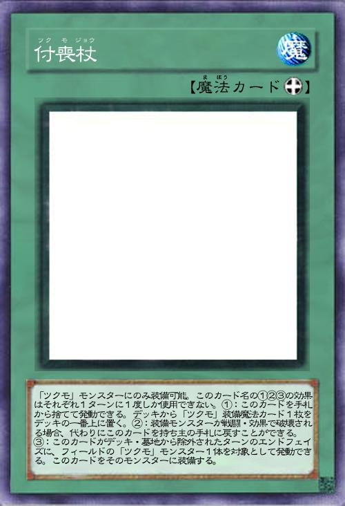 | 「ツクモ」モンスターにのみ装備可能。このカード名の①②③の効果はそれぞれ1ターンに1度しか使用できない。①:このカードを手札から捨てて発動できる。デッキから「ツクモ」装備魔法カード1枚をデッキの一番上に置く。②:装備モンスターが戦闘・効果で破壊される場合、代わりにこのカードを持ち主の手札に戻すことができる。 ③:このカードがデッキ・墓地から除外されたターンのエンドフェイズに、フィールドの「ツクモ」モンスター1体を対象として発動できる。このカードをそのモンスターに装備する。 | |||