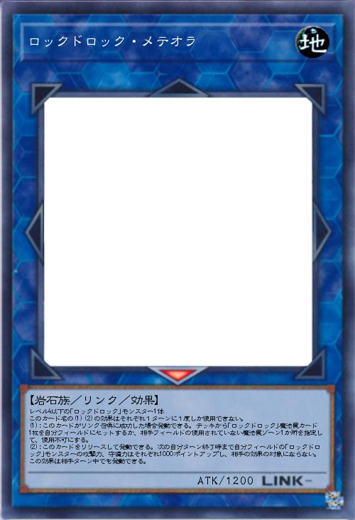 | レベル4以下の「ロックドロック」モンスター1体 このカード名の(1)(2)の効果はそれぞれ1ターンに1度しか使用できない。 (1):このカードがリンク召喚に成功した場合発動できる。デッキから「ロックドロック」魔法罠カード1枚を自分フィールドにセットするか、相手フィールドの使用されていない魔法罠ゾーン1か所を指定して、使用不可にする。 (2):このカードをリリースして発動できる。次の自分ターン終了時まで自分フィールドの「ロックドロック」モンスターの攻撃力、守備力はそれぞれ1000ポイントアップし、相手の効果の対象にならない。この効果は相手ターン中でも発動できる。 | |||