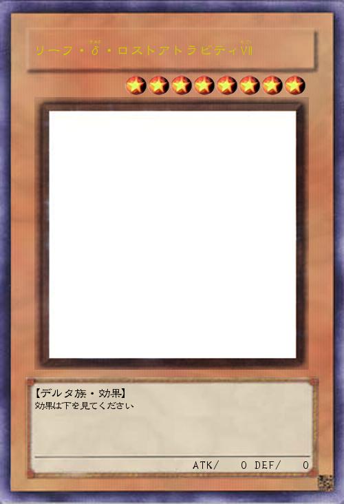 「効果・(自分フィールド上の「δ」となのついたモンスターを2体生け贄にさせた場合のみ効果を発動することができる。このモンスターにデルタカウンターをフィールド上の数置く。置いた後自分のデッキから置いた数のレベルになるように「δ」となのついたモンスターを特殊召喚することができる。またこのモンスターの召喚はいかなる場合でも特殊召喚扱いになる。)。デルタの親玉!!ではありません。親玉はエクシーズに存在します。あとこのモンスターは属性はありません。コメントお願いします(^-^)v」(2012-07-14 09:15)
