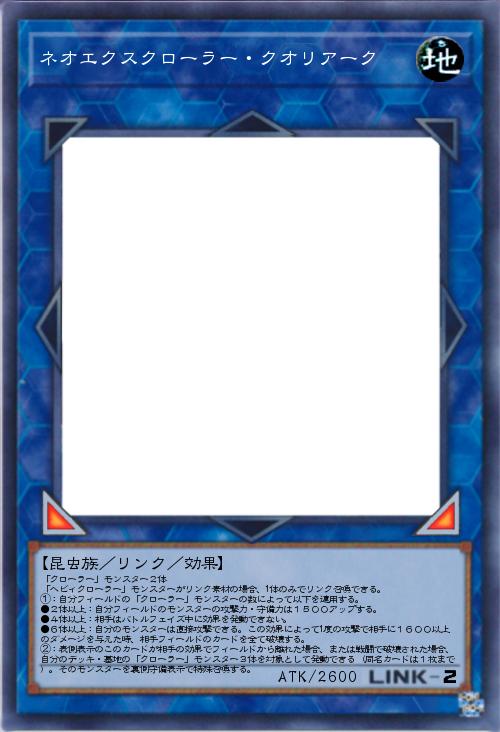 | 「クローラー」モンスター2体 「ヘビィクローラー」モンスターがリンク素材の場合、1体のみでリンク召喚できる。 ①:自分フィールドの「クローラー」モンスターの数によって以下を適用する。 ●2体以上:自分フィールドのモンスターの攻撃力・守備力は1500アップする。 ●4体以上:相手はバトルフェイズ中に効果を発動できない。 ●6体以上:自分のモンスターは直接攻撃できる。この効果によって1度の攻撃で相手に1600以上のダメージを与えた時、相手フィールドのカードを全て破壊する。 ②:表側表示のこのカードが相手の効果でフィールドから離れた場合、または戦闘で破壊された場合、自分のデッキ・墓地の「クローラー」モンスター3体を対象として発動できる(同名カードは1枚まで)。そのモンスターを裏側守備表示で特殊召喚する。 | |||